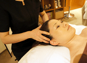 頭のツボの指圧を行い緊張を緩め、頭皮のマッサージで滞りを流していきます。
